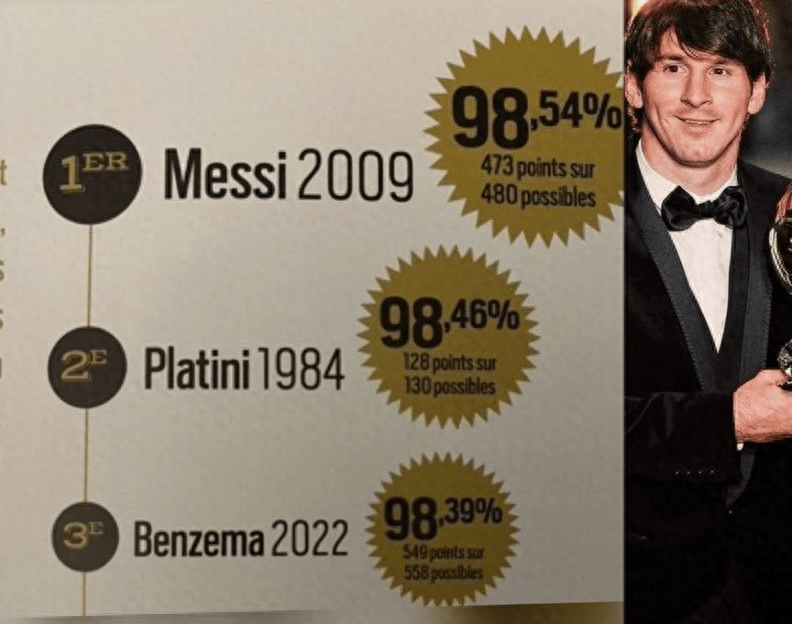 梅西金球奖得票率98.54%封王,22岁到36岁巅峰跨度,C罗四大皆空获奖引争议